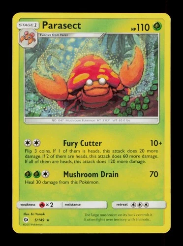 Parasect Rare - 5/149 - Sun & Moon Base Pokemon 2017