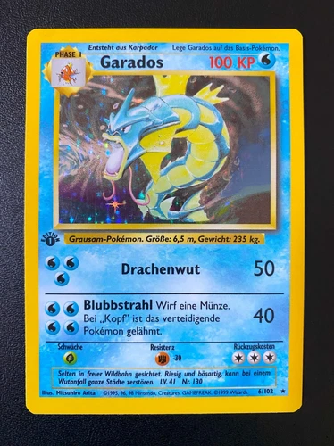 POKEMON GARADOS (GYARADOS) HOLO RARE 6/102 BASE SET 1ST EDITION GERMAN EX/NM