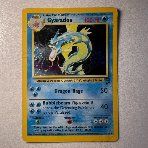 Pokémon TCG: Rare Gyarados 7/130, Base Set 2, Holo, 2000 WoTC, #1