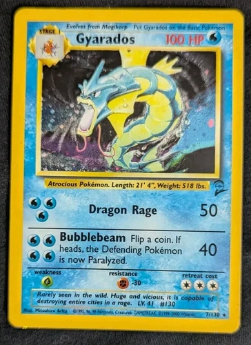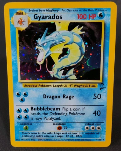 HOLO Base Set 2 Gyarados! 7/130 Pokémon 1999 Pokemon Card Collection