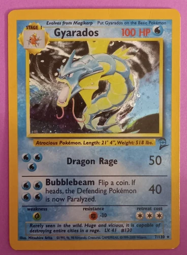 Pokemon TCG Gyarados Base Set 2 7/130 Holo Foil Rare WOTC Nintendo