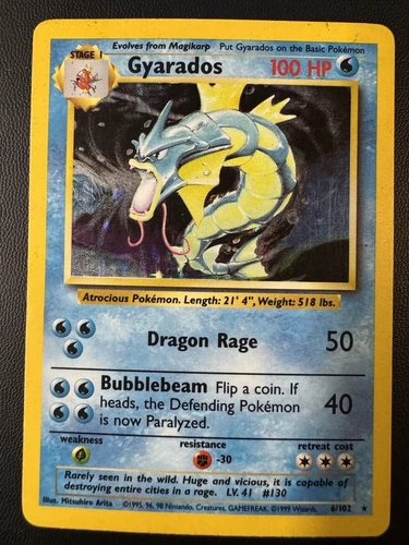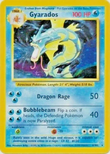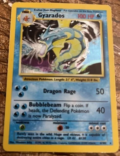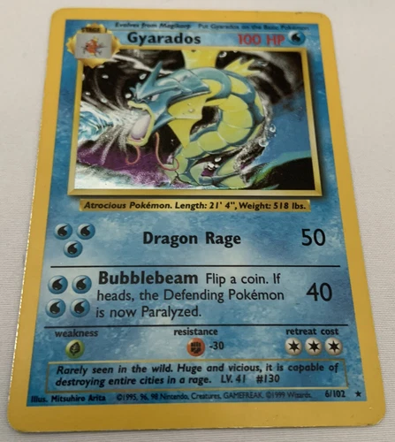 Pokémon Gyarados Base Set 6/102 Holo Unlimited Holo Rare 1999 TCG
