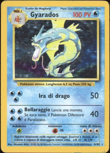2000 Pokemon ITALIAN Unlimited Base Set Gyarados Holo 6/102 EX-MT