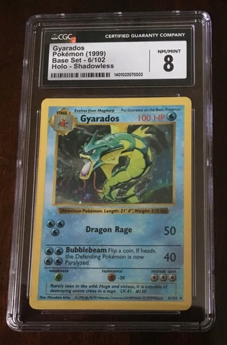 CGC 8 Gyarados Pokemon 1999 Base Set Shadowless 6/102 Holo Newly Graded Feb 2024