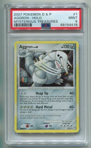 2007 POKEMON D&P MYSTERIOUS TREASURES AGGRON LV. 49 #1/123 RARE HOLO PSA 9 MINT