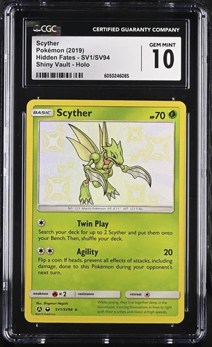 CGC 10 Scyther 2019 Hidden Fates SV1/SV94 Shiny Vault Holo Pokemon Card psa