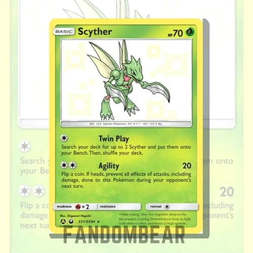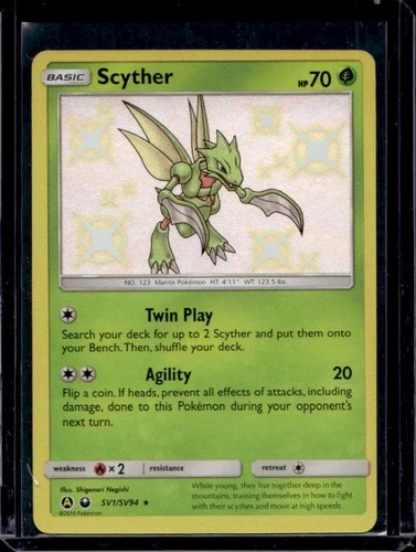 Scyther - SV1/SV94 - Pokemon Hidden Fates Sun & Moon Shiny Rare Card NM