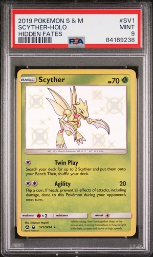 2019 POKEMON SUN & MOON HIDDEN FATES SCYTHER-HOLO #SV1 PSA 9