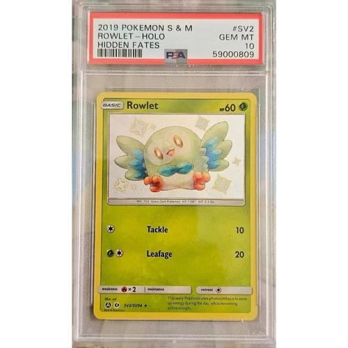 Pokémon TCG PSA 10 Rowlet SV2/SV94 Shiny Vault Holo Hidden Fates