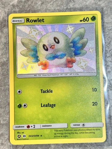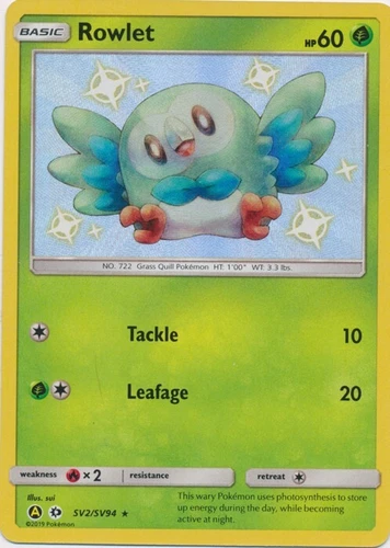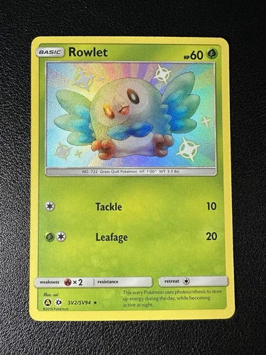 Rowlet - SV2/SV94 - Pokemon Hidden Fates Sun & Moon Shiny Rare Card NM
