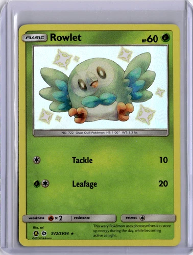 Rowlet SV2/SV94 Pokemon: Hidden Fates: Shiny Vault Holo (Near Mint Condition)
