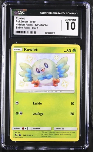 Pokémon TCG PSA 10 Rowlet SV2/SV94 Shiny Vault Holo Hidden Fates