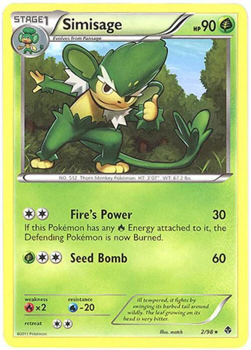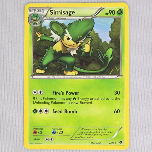 Simisage 2011 2/98 Rare Pokemon Trading Card Regular