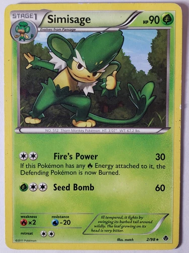 Pokemon Card - Emerging Powers 2/98 - SIMISAGE (rare) - NM